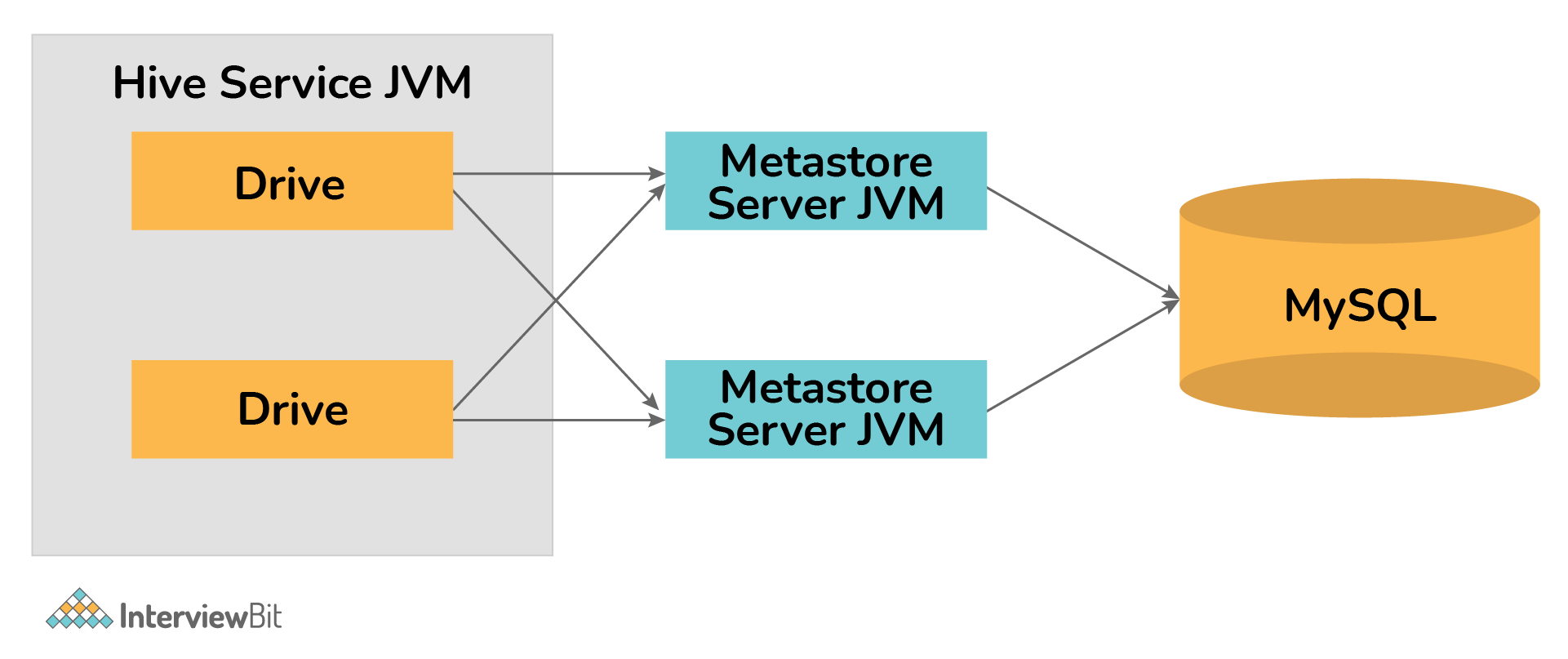 Metastore is used to store the metadata information; it’s also possible to use RDBMS and the open-source ORM layer, converting object Representation into a relational schema. It’s the central repository of Apache Hive metadata. It stores metadata for Hive tables (similar to their schema and location) and partitions in a relational database. It gives the client access to this information by using metastore service API. Disk storage for the Hive metadata is separate from HDFS storage.